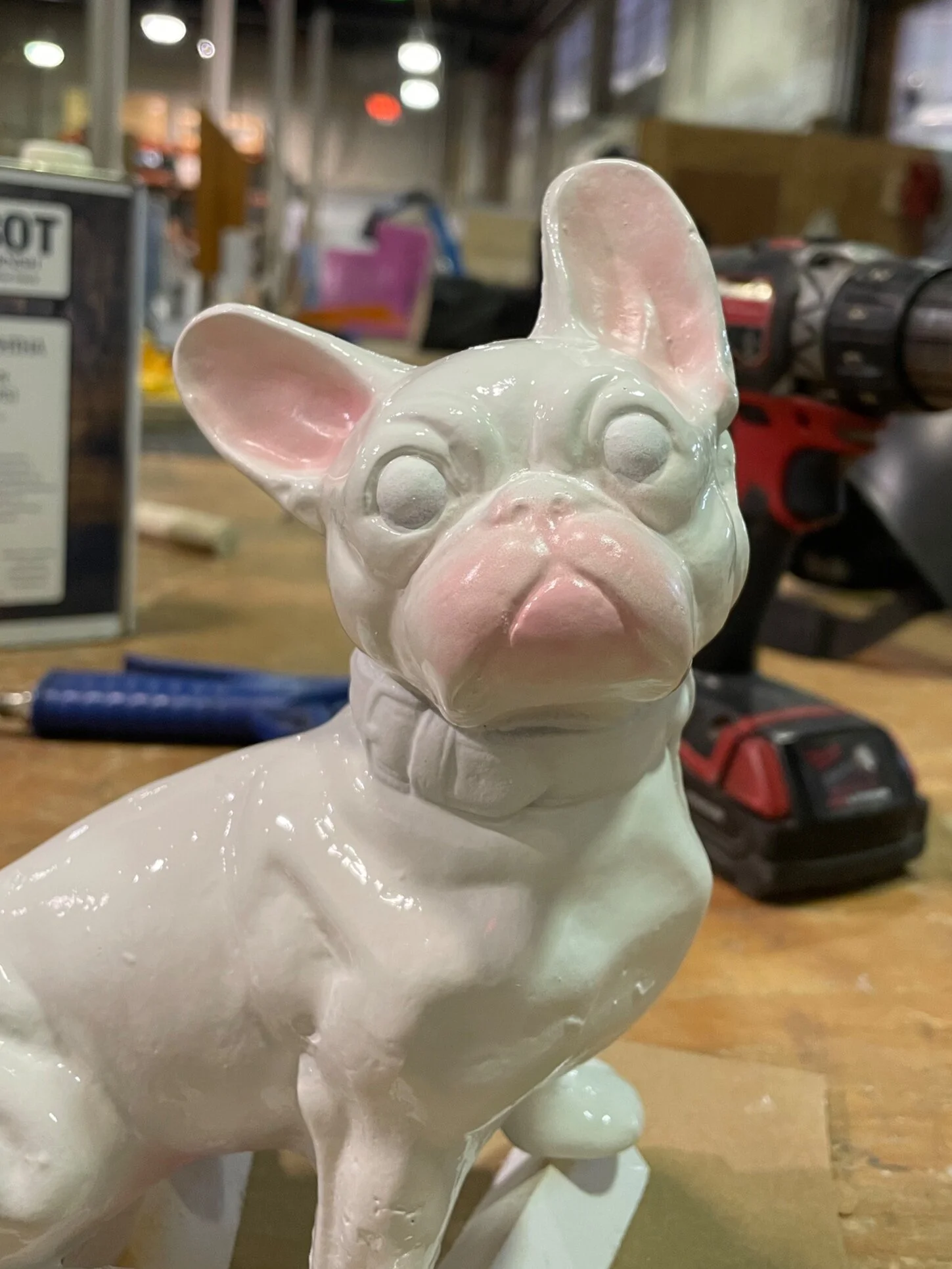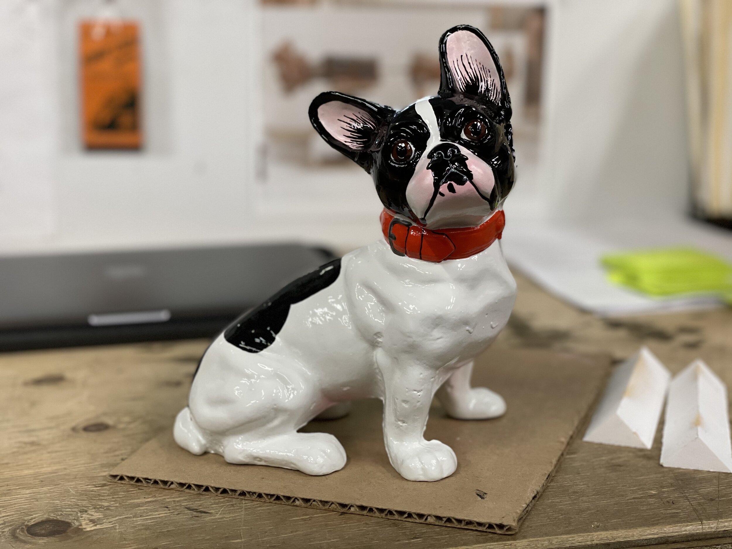 Jax was a wonderful, sturdy little French bulldog. His mom loved him and he loved her. Jax passed before his time, and his owner told me how devastated she was; he had been her little protector. This “Jax” is cast iron, painted with oil enamel and will never leave her side, keeping her safe always.